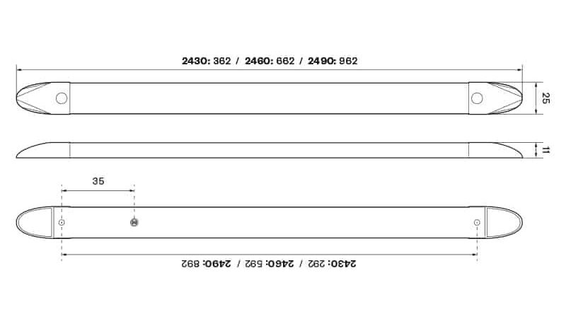 - Dimensions: 362mm x 25mm x 11mm
