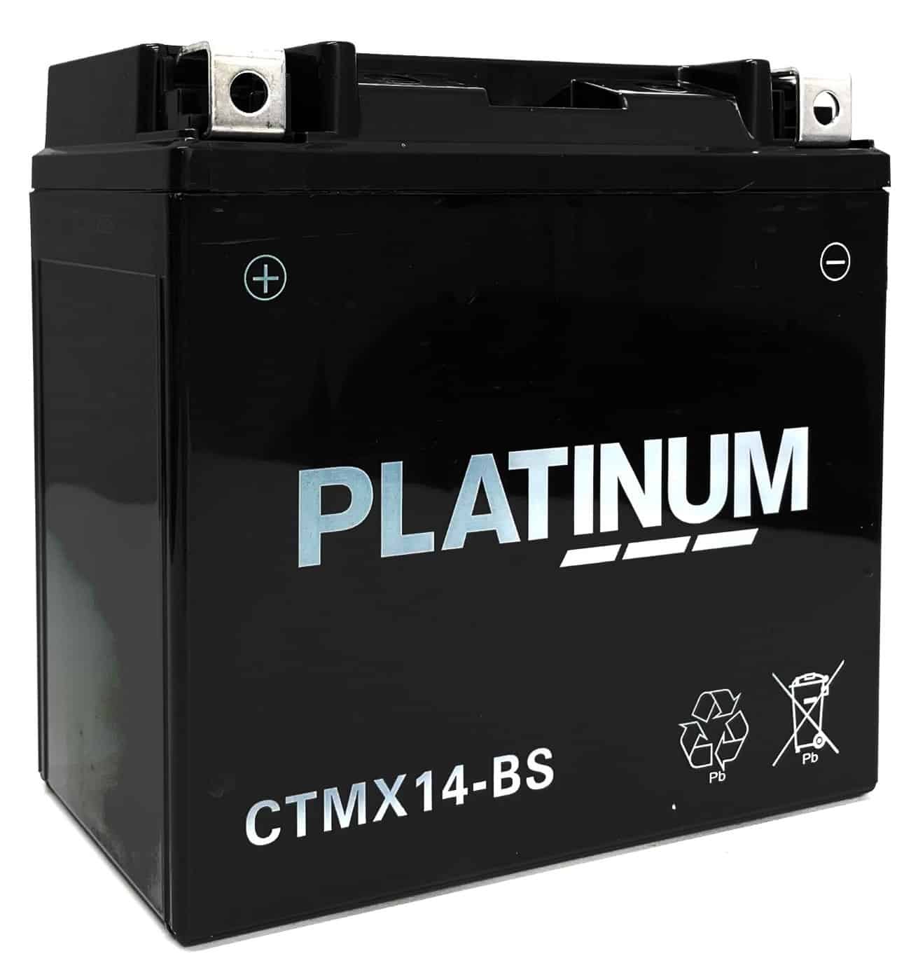 The Platinum CTMX14-BS is a high-performance, maintenance-free motorcycle battery designed to deliver reliable starting power and long-lasting performance. Built using advanced AGM (Absorbent Glass Mat) technology, this battery provides excellent vibration resistance and dependable power for motorcycles, scooters, ATVs, and other powersport vehicles.
